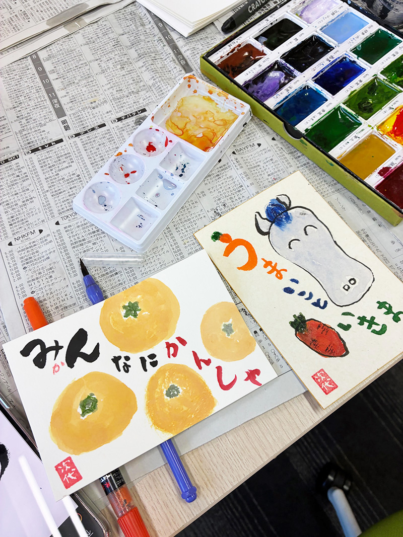 佐藤商事株式会社さまのオフィスをお借りして冬の笑手紙教室を開催いたしました。